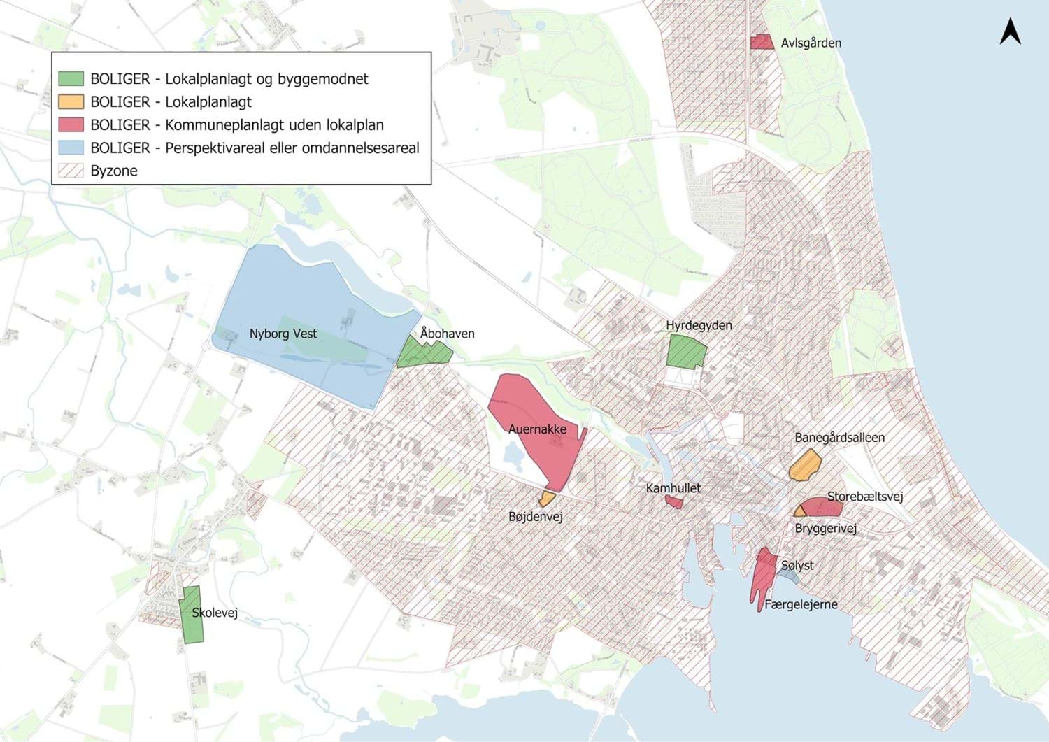 I Nyborg kommune er der rummelighed til både bolig- og erhvervsudvikling i alle større byer. Dvs. eksisterende arealer udlagt i kommuneplanen, som enten er lokalplanlagte eller kan lokalplanlægges til bolig- og erhvervsformål.