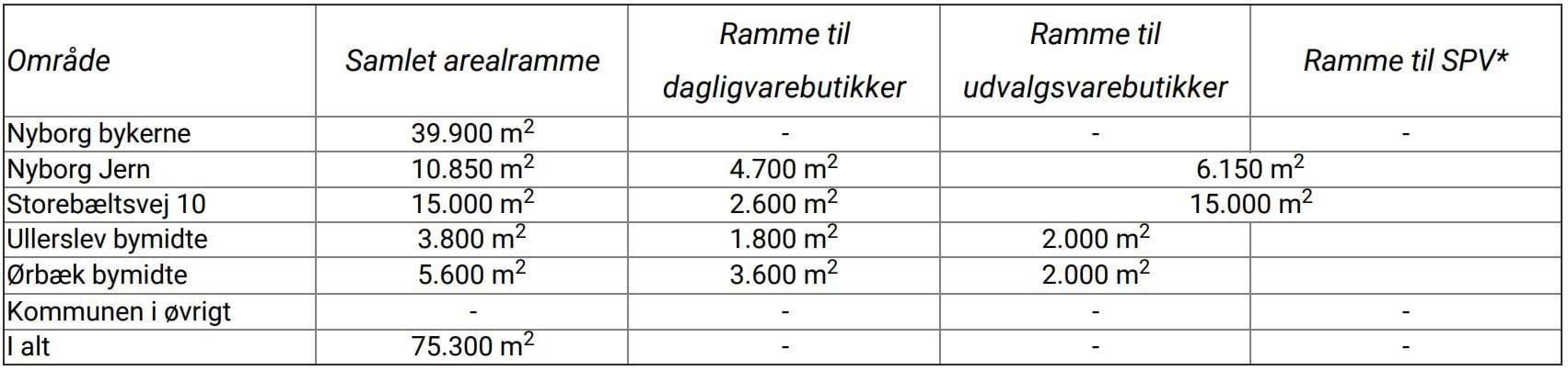 - Rummeligheder til butiksformål udlægges som vist i nedenstående skema.
