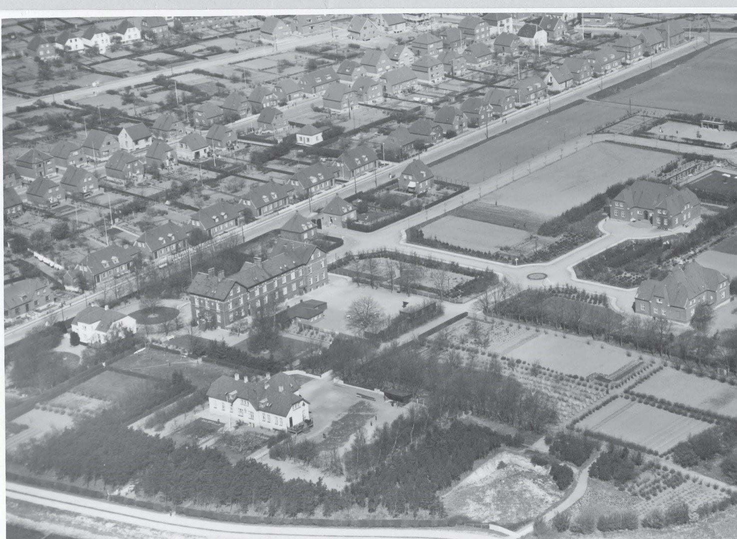 Området ved Epileptikerhospitalet. Billedet er taget inden for perioden 1936-1939. Nyborg Lokalhistoriske Arkiv